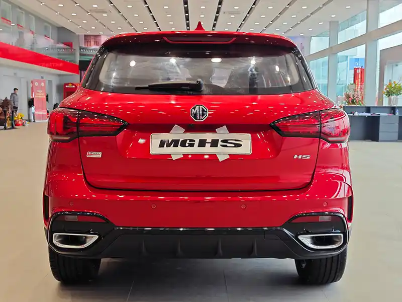 MG HS 2025 được trang bị hệ thống ống xả kép đối xứng 2 bên dạng hình elip mang đậm phong cách thể thao. Tương tự như cản trước, cản sau của xe cũng có phần ốp màu bạc với những khe thoát giúp giúp luồng gió lưu thông tối ưu hơn.